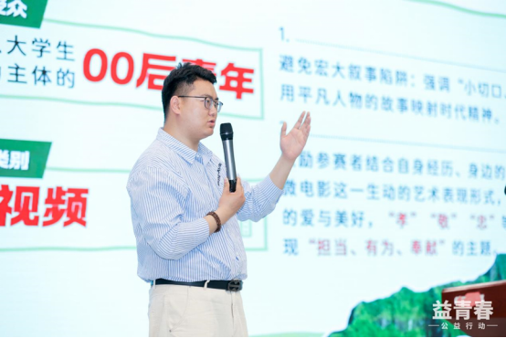 最后,广告人文化集团首席战略官、学院奖益青春评审主席周伟先生的创意分享,堪称一场“红色叙事年轻化”的破局指南。“红色文化与创意表达并非对立,而是可以相辅相成”。周伟先生分享了多个成功的微电影案例,与同学们共同探讨公益微电影的“共情逻辑”。他鼓励同学们打破“红专叙事”的刻板印象,用跨界思维赋予红色文化新生机。这场分享不仅为同学们提供了宝贵的创作灵感,更激发了他们对红色文化传承与创新的使命感。
