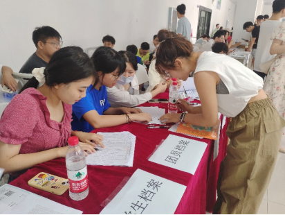 早上7时,迎新工作正式开始。新生报到点的志愿者们仔细核对入学材料,引导新生办理报到手续。热情的志愿者们不停往返于学生宿舍与报到点之间,协助新生搬放行李、参观校园教学楼、领取宿舍钥匙以及入住宿舍等,提供了细致、周到的服务。辅导员老师们实时掌握报到情况,与新生和家长们热情交流,解答问题,帮助学生更快、更好地融入新环境。
