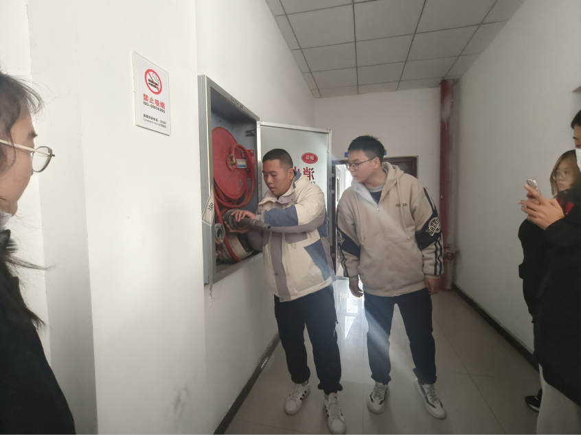 讲解过灭火器的使用方法后,专业人士又带领老师和同学学习消防栓的使用方法。随后由现场的两位同学作为代表进行灭火演习,两位同学出色的完成了任务,锻炼了动手实践的能力,加强了消防意识。