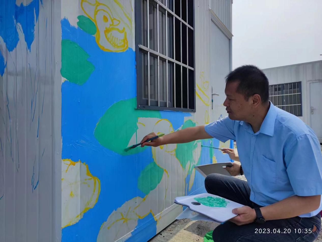 墙面绘制过程中,师生分工明确,在确定主题和素材后在墙上设计出整体图案,根据草图调和出五彩斑斓的颜料,通过不同型号的画笔勾勒出轮廓,为了使画面变得更加丰富饱满,队员们的衣服、鞋子、帽子上不免沾上了许多颜料,但脸上却洋溢着灿烂的笑容,面对成果大家都成就感满满。