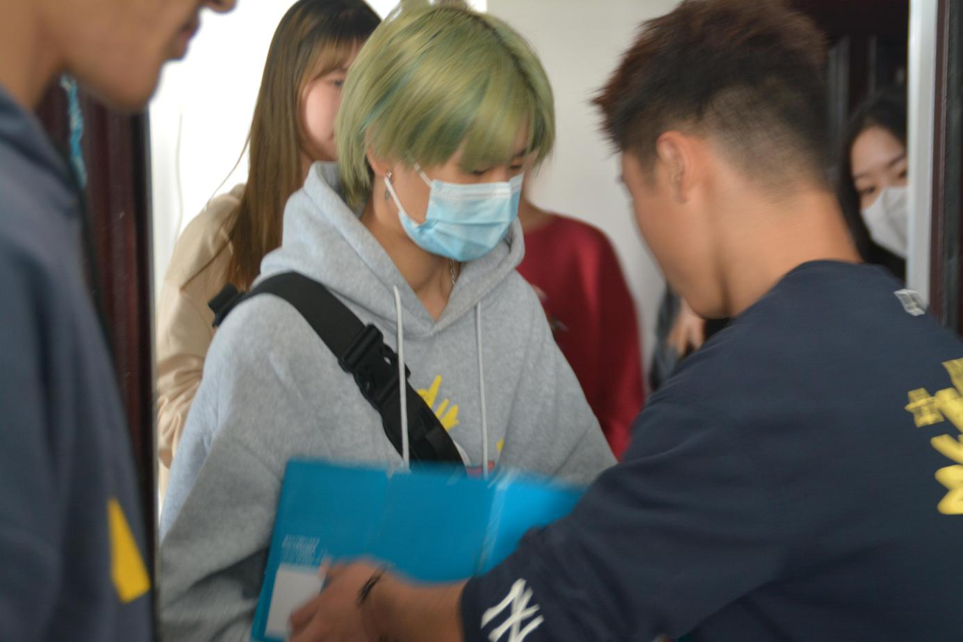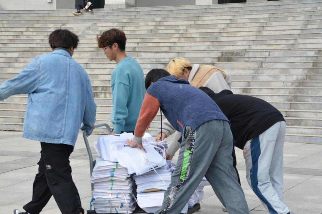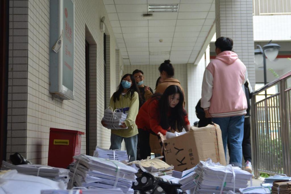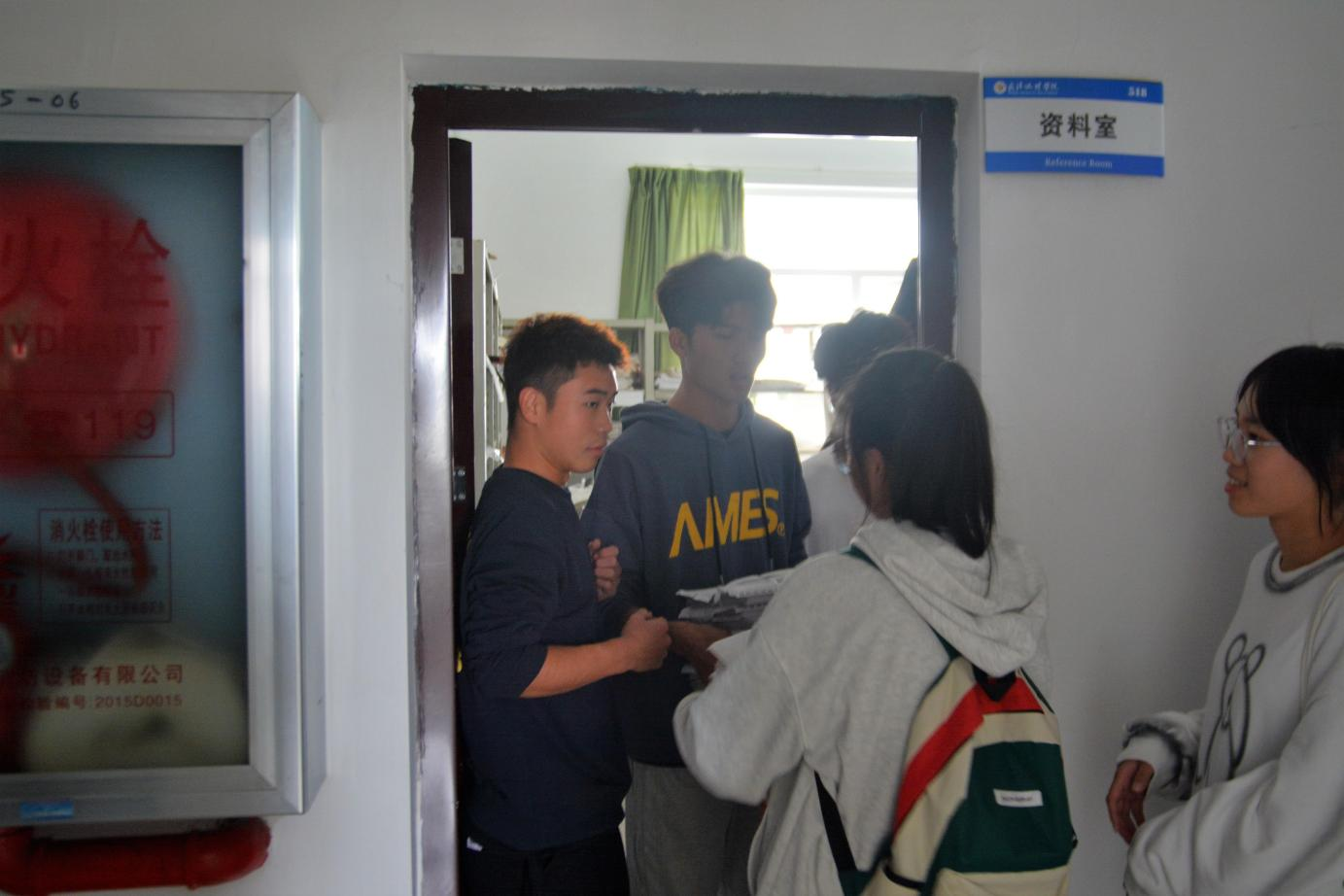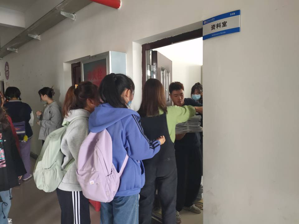 当天中午,活动热火朝天开展起来。学生会干事在各部长的带领下来到3号楼资料室门口,在走廊井然有序地排起队伍,等待领取资料。