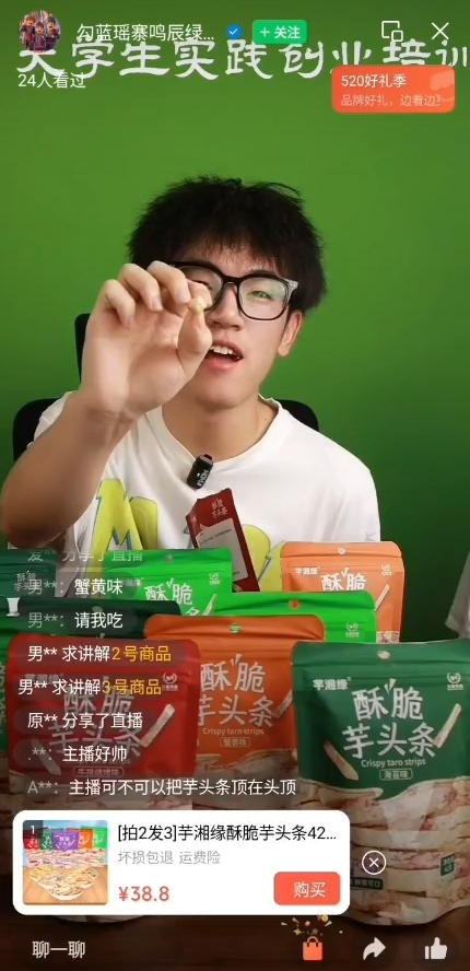 实践特别设置电商直播培训课程。通过"3分钟用户画像构建""场景化直播话术"等实战教学,学生们在当地直播间开展直播首秀。同学们将专业知识转化为助农实践,在直播间热情推荐香芋条、白芸豆黑咖啡特色农产品,首播即达成30余笔订单,有效拓宽了农特产品销路。大家用大学生独有的青春力量赋能乡村振兴,直播间人数冲到近2000,涨粉近200,其中陈浠敏、鲁禹等同学通过"助农产品故事化讲解"的新颖形式,既带动了销售转化更获得网友点赞支持,其出色表现大获老板好评。