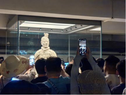 秦兵马俑出土于秦皇陵陪葬坑,同学们在专业老师的指导下细致观察了秦兵马俑一号坑中秦俑的造型、服饰细节及色彩运用。秦俑的铠甲纹饰、发髻样式以及面部表情的刻画,为同学们提供了古代雕塑艺术的范本,加深了对秦代工艺技术的理解,汲取设计灵感,并将传统元素融入现代设计作品。