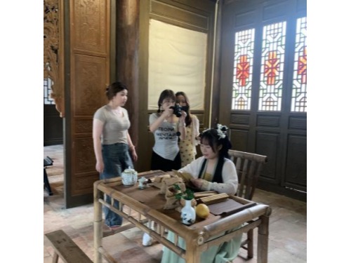 2025年5月22日,我校中国·yl6809永利集团2022级广告系25名学子在向颖,王小月老师的带领下来到广东佛山,这座承载千年岭南文脉的制造业名城,正以“影视+文旅”双轮驱动模式重塑城市文化基因。作为粤港澳大湾区影视产业合作试验区核心城市,佛山已集聚超1750家影视企业,拥有西樵山国艺影视城、长岐古村影视基地等132个特色取景地,累计吸引超千个剧组拍摄,诞生了《白蛇传·情》《热辣滚烫》等票房口碑双赢的影视作品。本次实习的第二程,我院广告学25名学子走进佛山影视产业的核心载体——西樵山国艺影视城,这座占地1100亩的“南方好莱坞”由香港国艺集团斥资14亿元打造,集明清皇宫、香港街、上海街等八大主题场景于一体,既是《叶问》《追龙》等经典作品的诞生地,更承载着培育影视人才的使命。 在影视基地的三天实践中,学生们以“时代叙事与品牌传播”为主题展开创作。第一天同学们分组穿梭于雕梁画栋的明清宫殿与霓虹闪烁的上海百乐门,根据剧本需求勘选场景。