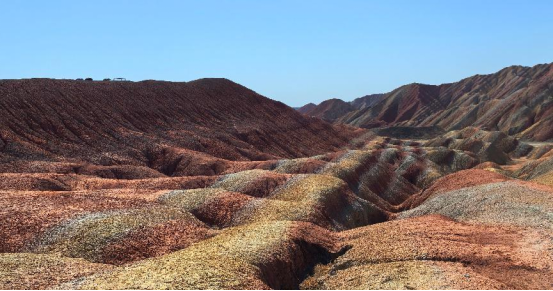 张掖七彩丹霞地貌作为典型的红层地貌,其色彩分层与形态结构为设计学科提供了天然的研究样本。地貌的“顶平、身陡、麓缓”特征及波浪状色带,展现了自然界的动态构成法则。这种不可再生的地质遗产,其色彩组合(如赭红、姜黄、灰白等)与纹理变化,可直接转化为设计中的色彩系统与肌理表现,为动画、视觉传达等专业领域提供灵感来源,为后续生态主题设计项目积累素材。丹霞地貌的脆弱性引发学生思考:如何在设计中平衡美学表达与生态保护?