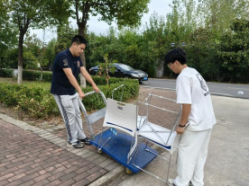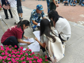 而在训练场不远处的一站式社区服务中心,还有一群默默奉献的志愿者。他们设立了军训失物招领处,方便同学们登记认领丢失物品。每天,他们还会为军训的新生送上酸梅汤,消暑解渴,带来一丝清凉的慰藉。他们不言辛苦,用细致与热情守护着每一位新生的“后方”。