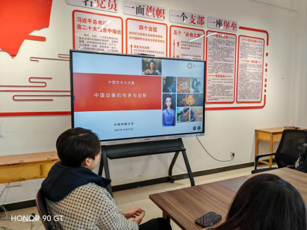 讲座中,主讲人结合《大闹天宫》等经典作品以及等近年来的现象级新作,具体分析了中国动画在视觉风格、叙事手法、技术应用等方面的传承脉络与突破创新,强调了艺术精神、文化自信与时代审美在动画创作中的核心地位。收看学习过程中,美术学院会议室及线上平台秩序井然,师生们全神贯注,沉浸在精彩纷呈的讲座内容中。动画、视觉传达、广告专业等相关专业的师生更是表现出极高的关注度。大家认真记录,不时为讲座中展现的艺术魅力与深刻见解所触动。