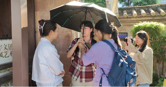 在这里,龙窑依山而建的独特形态,是“场景构建”的原始范本;窑工们仍坚持的古老柴烧技艺,是“非遗活化”的现场展演;而窑尾那棵被赋予美好寓意的古榕,则完美诠释了“民间叙事”如何通过符号化融入大众传播。同学们纷纷举起相机,捕捉龙窑的磅礴气势,记录匠人手上的岁月痕迹,拍下泥土在转盘上“活过来”的奇妙瞬间。