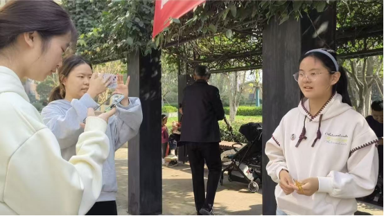 陈蓓蓓同学则分享了实践带来的成就感,以前总认为课本上的理论知识离生活很远,直到这次拿着相机走进社区。看到爷爷奶奶对着镜头笑得特别灿烂,社区工作人员一遍遍耐心地给同学们介绍活动细节,主动帮同学们找拍摄角度,让大家感受到了专业的价值。“原来我们学的拍摄技巧,能把这些温暖的瞬间留住,能给别人带来快乐的回忆,这种自豪感不亲身去实践是感受不到的。”