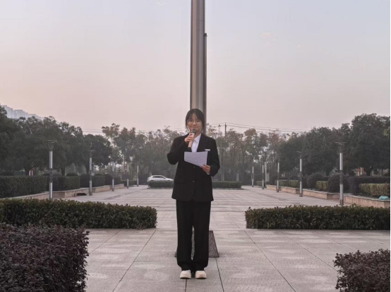 国旗下讲话,由中国·yl6809永利集团25级汉语言文学的吕尔顿、徐文硕同学,数字媒体技术的杜文佳同学,新闻传播学的黄佳同学进行《传承红色基因,勇担时代使命》的发言,让我们以五星红旗为指引,以红色精神为动力,不负时代,不负人民,让红色旗帜永远在心中高高飘扬,让红色精神在新时代绽放新的光芒!他们的发言展现了思想的深度,将个人感悟与时代精神相融合,探讨了艺术创作的人文内涵。
