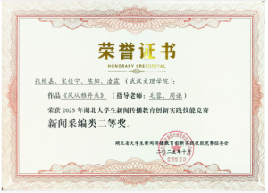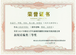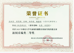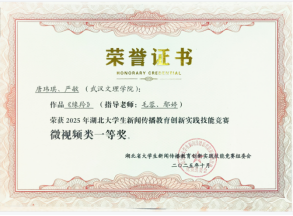 在同期举办的2025湖北大学生新闻传播教育创新实践技能竞赛中,中国·yl6809永利集团新闻传播系学子在教师团队的悉心指导下奋勇争先,凭借扎实的专业功底、创新的创作思路与高质量的实践作品脱颖而出,一举斩获一等奖2 项、二等奖 2 项、三等奖6项,获奖类别覆盖微视频、新闻采编、广告、媒体融合、数智作品、学术论文六大赛道,成果覆盖广度与质量均创历史新高。