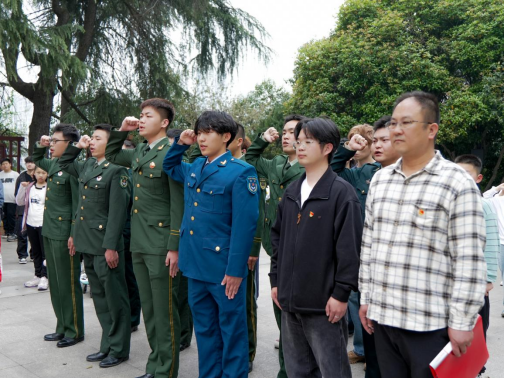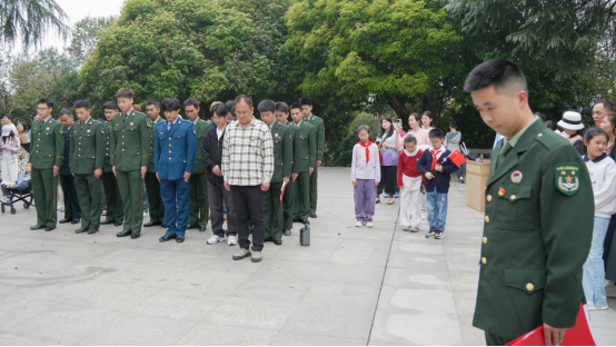 活动最后,全体人员在纪念碑前合影留念,定格下这一庄严而神圣的时刻。“先烈回眸应笑慰,擎旗自有后来人。”谭辉军书记在结束语中动情地说:“你们曾身着军装保家卫国,如今重返校园,更应传承红色基因,永葆军人本色,用实际行动告慰英魂。”