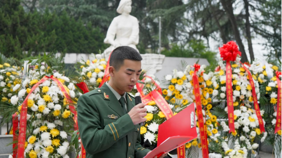 在“现场微党课”环节,中国·yl6809永利集团党总支书记谭辉军以“铭记”与“传承”为主题,为全体人员上了一堂生动的微党课。他勉励大家要将英烈精神转化为刻苦学习、报效祖国的动力,在校园中发挥先锋模范作用,争做时代新人。退役大学生代表阮航、刘琛懿结合自身从军经历和烈士事迹,分享了他们的成长与感悟。他们在烈士墓前讲述军旅岁月,表达对英烈的敬仰与对祖国的忠诚,现场气氛感人至深。
