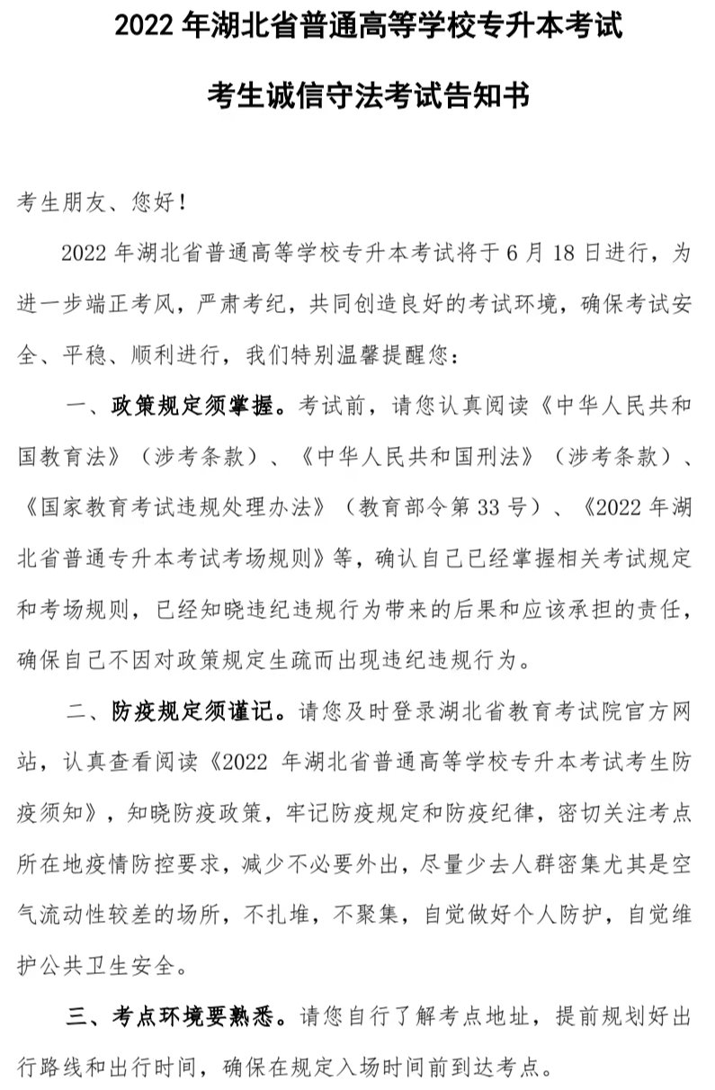 下一篇:2022 年湖北省普通高等学校专升本考试考生防疫须知