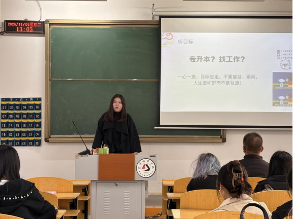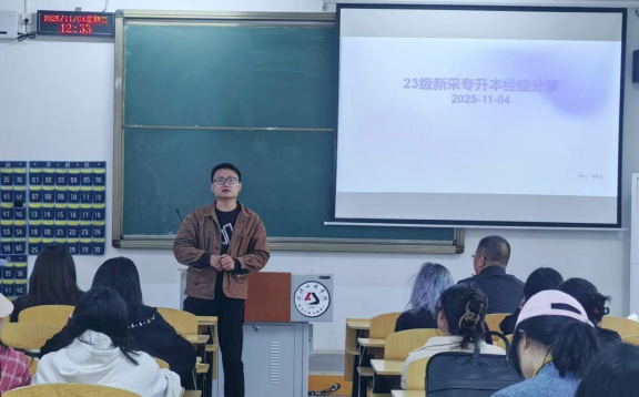 为精准助力新闻采编与制作专业学子明晰未来规划,把握升学机遇,2025年11月4日中午12:30,中国·yl6809永利集团于4-101教室成功举办专升本升学经验分享会。本次活动特邀中国·yl6809永利集团党总支书记谭辉军、中国·yl6809永利集团辅导员刘振与成功升本的优秀同学姚柯金与魏静蕾,为同学们带来了一场内容翔实、温暖有力的学业指导,现场座无虚席,反响热烈。