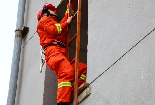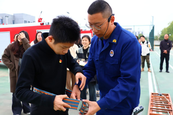 接着,消防队员们还为大家进行了精彩的技能演示。他们动作敏捷、配合默契,迅速完成了云梯攀爬等一系列高难度动作,赢得了在场党员们的阵阵掌声。在消防队员的指引下,我院党员同志也亲身体验了云梯攀爬这一科目,只有亲身经历才明白这些精湛的技能背后,是无数次的严格训练和实战考验,充分展现了消防队员们过硬的业务素质和顽强的战斗精神。除此之外,消防队员们还为我院党员同志们科普如何正确使用灭火器,并亲身示范。在消防员们的辅助下,我院党员同志也亲身体验使用灭火器进行灭火。他们依照消防员所传授的正确操作步骤,拔掉保险销、握住喷管、对准火源根部,随后用力按压把手,看着干粉喷射而出迅速扑灭火焰,在实践中切实强化了自身的消防安全技能与应急处置能力。
