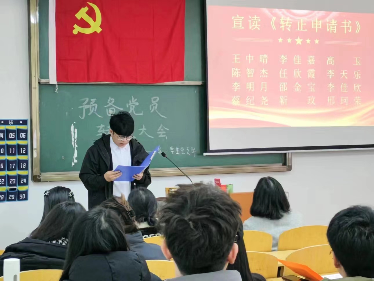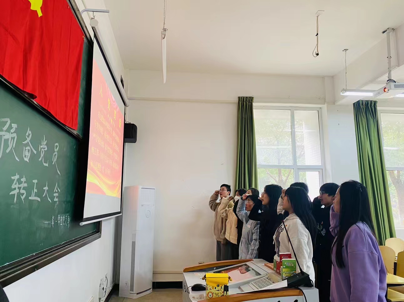2023年11月13日12点20分,第一学生党支部、第二学生党支部吸收预备党员大会于4-101教室举行,发展对象宣誓于7-316进行。