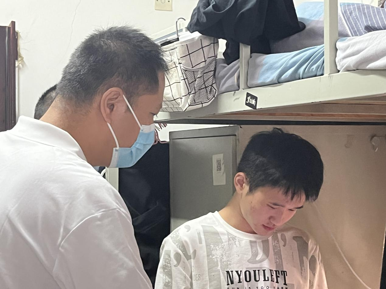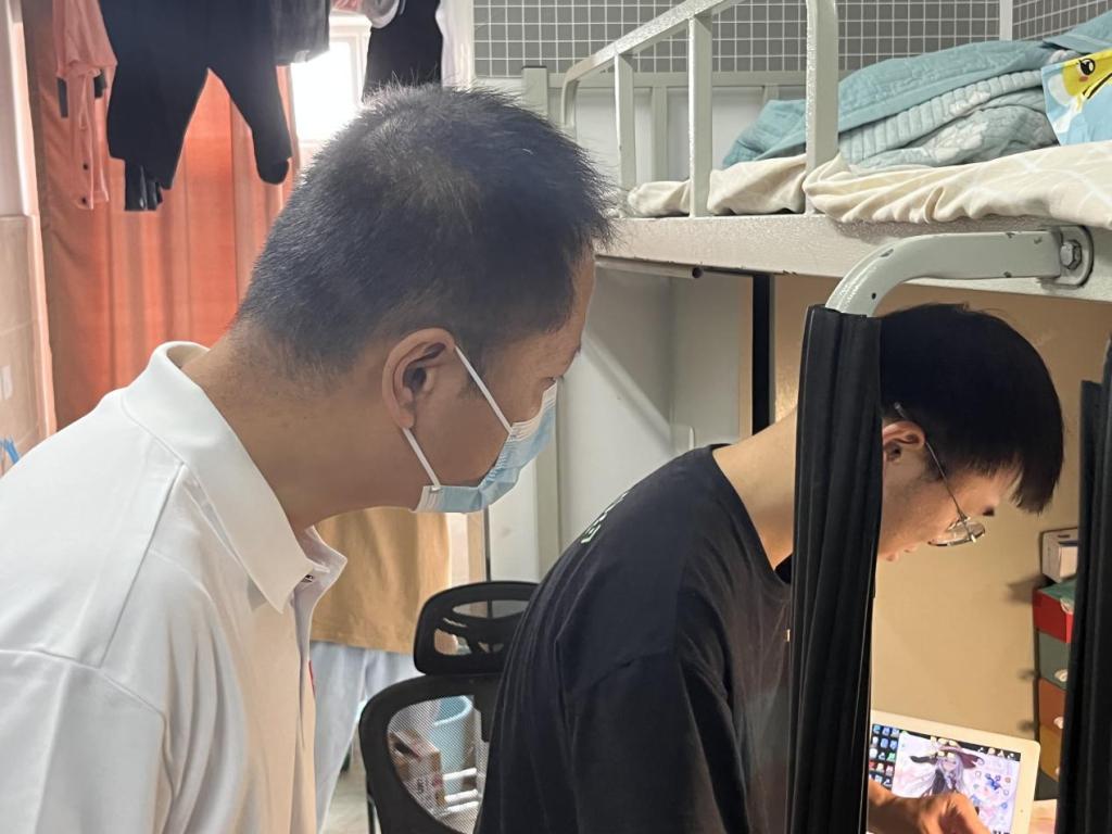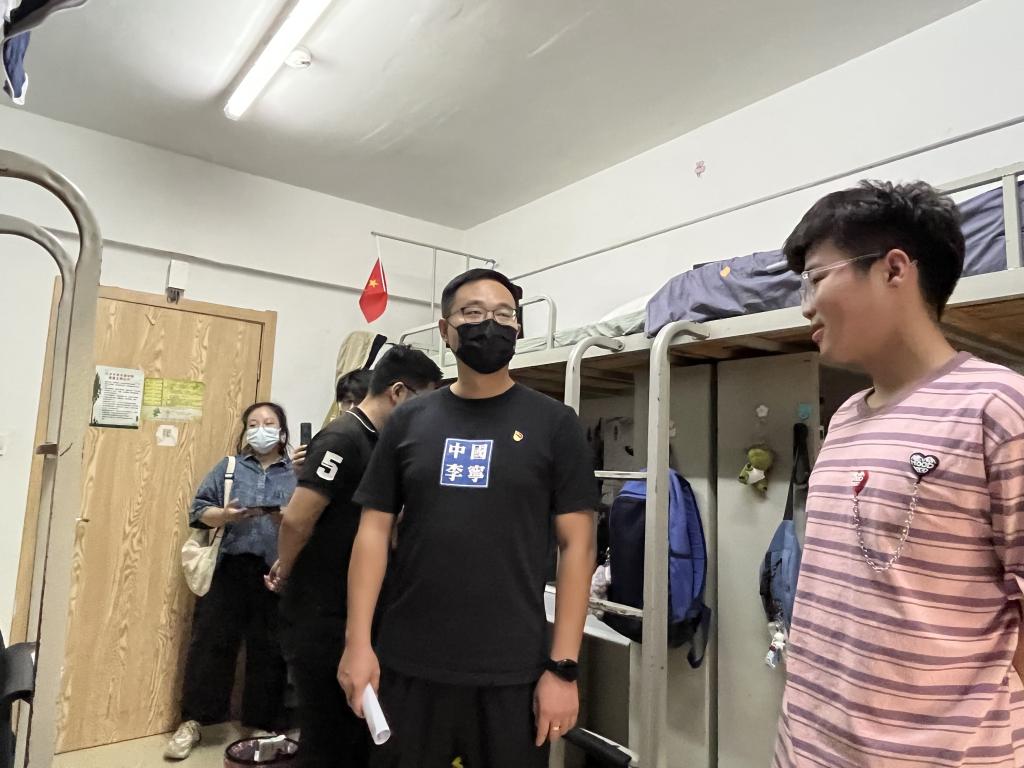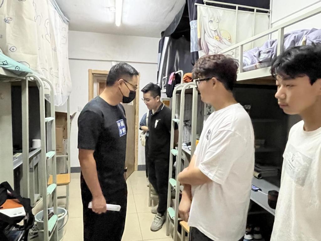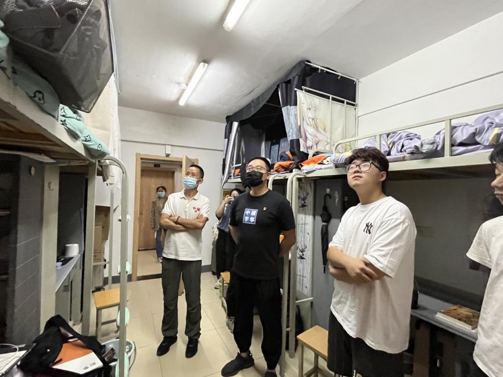 在深入宿舍的过程中,领导老师们对学生关怀备至,亲切地与学生拉起了家常,询问了解同学们的学习近况与生活作息,为学生排忧解难。同时耐心仔细地进行宿舍安全检查,并叮嘱同学们要重视宿舍安全卫生,认真遵守学校疫情防控安排,维护好个人健康安全,努力营造安全、文明、和谐的宿舍环境。