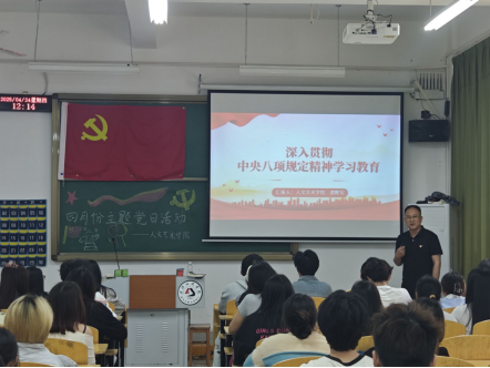 活动最后,党支部书记谢晓梅在总结中强调,支部将把落实中央八项规定精神融入党员日常教育管理,定期开展廉政教育、作风评议和自查自纠,推动清廉支部建设常态化。要求全体党员以此次学习为契机,在毕业论文答辩、就业帮扶、文明离校等近期重点工作中亮身份、树标杆,用实际行动践行初心使命。