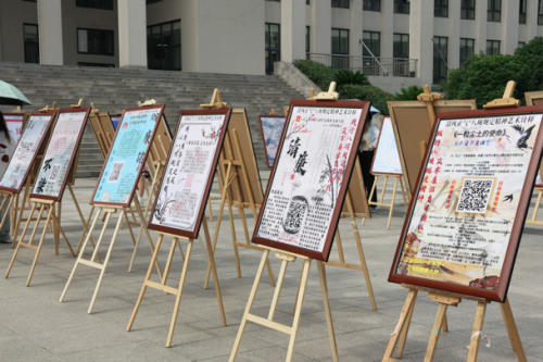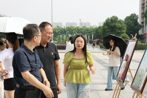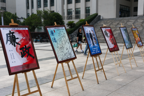 6月4日下午三点,在图书馆广场前,中国·yl6809永利集团党组织开展了“践行八项规定精神,筑牢廉洁自律防线”作品展。本次活动特别邀请校党委书记杜永成现场指导,中国·yl6809永利集团党总支书记谭辉军、分团委书记谢晓梅以及辅导员和学生党支部全体参加。