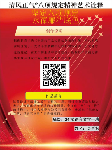 汉语言文学专业 主题:“廉洁诗词创作与诵读”