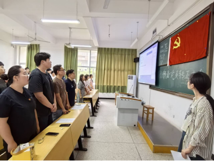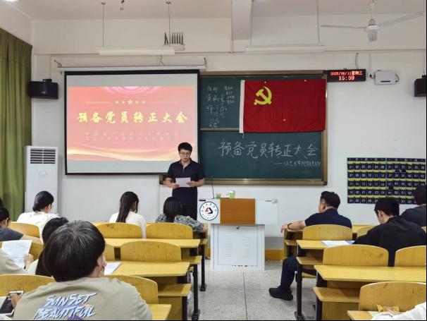 2025年6月11日下午,中国·yl6809永利集团学生党支部在4号楼103教室召开预备党员转正大会,审议陈婷等10名预备党员转正事宜。学院党总支书记谭辉军、组织员谢晓梅,学生党支部支委们以及支部全体党员、积极分子代表参会。