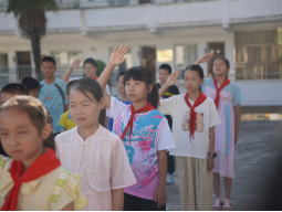 习近平总书记曾深刻指出:“伟大抗战精神,是中国人民弥足珍贵的精神财富,将永远激励中国人民克服一切艰难险阻、为实现中华民族伟大复兴而奋斗。” 当日早上,志愿服务队与桂花完全小学全体师生肃立于操场,举行升国旗仪式。当雄壮的《义勇军进行曲》响彻校园,五星红旗冉冉升起,全体人员神情肃穆、目光如炬,向国旗行注目礼,以最崇高的敬意致敬祖国山河,告慰先烈忠魂。仪式后,志愿者以详实史料与生动讲解,为师生们重现七七事变的悲壮历程,深刻阐释抗战精神的时代内涵。字字铿锵的讲述中,那段浴血奋战的历史如画卷徐徐展开,激发起师生们强烈的爱国情怀与责任担当。