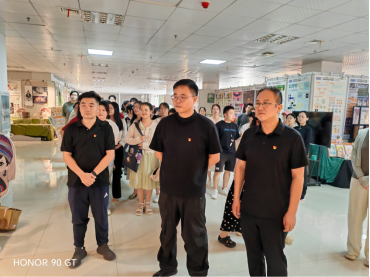 随后,师生们来到行政楼七楼713室武汉长江新区"石榴籽"工作室进行参观。解说员详细地介绍了工作室的建设背景、服务功能以及在促进校地联动、服务民族师生等方面发挥的积极作用。参观过程中,党员师生就如何将党性教育与民族团结教育相结合展开了热烈讨论,交流了各自在工作和学习中的心得体会。