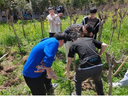 (学生们进行植树除草活动)
