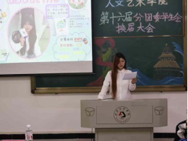 大会在主持人易美均的致辞中拉开帷幕。过去一年,分团委学生会成员恪尽职守,服务师生,展现了人艺学子的担当。本次换届不仅是职务的交接,更是责任与信任的传递。新一届成员将接过接力棒,以饱满的热情继续书写人艺的精彩篇章。