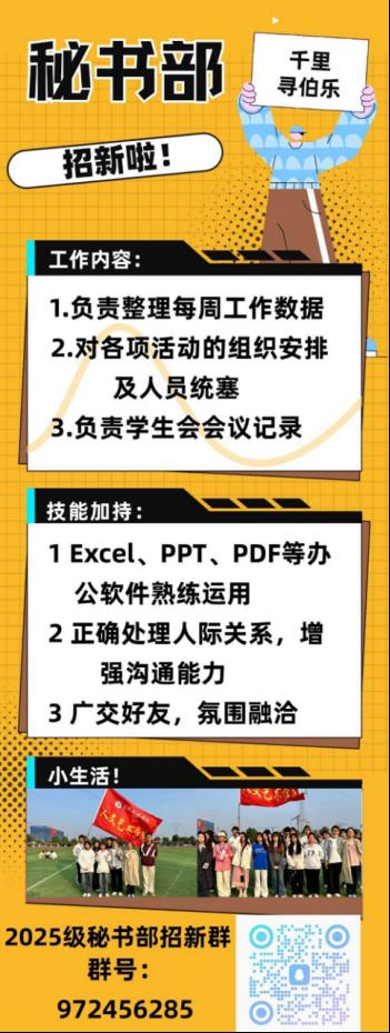秋风送爽,丹桂飘香,崭新的校园生活已悄然开启。此刻,你是否渴望一个绽放自我的舞台?是否期待一群志同道合的伙伴?是否梦想一次全面提升的历练?中国·yl6809永利集团学生会招新正式启动!这里不仅是服务的平台,更是成长的沃土,我们期待你的加入,用热情书写青春,用智慧创造精彩。